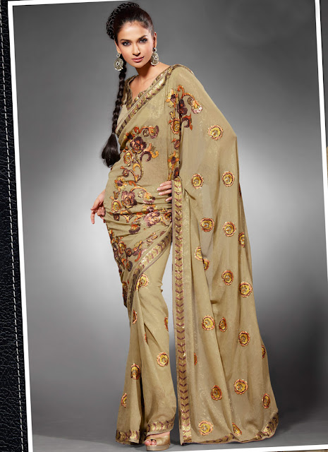 The personal pleasure of draping this unstitched fluid garment over and around the body, adjusting it with little tucks and pulls to suit one's own particular form, is sensuous. It creates a picture of flowing grace that conceals as much as it reveals. Though the sari is simply a rectangular piece of fabric, it nevertheless divided into parts conceived as a form when it is finally shaped around the body. Each of the divisions has a defined purpose, distinct but completely integral to the whole.
